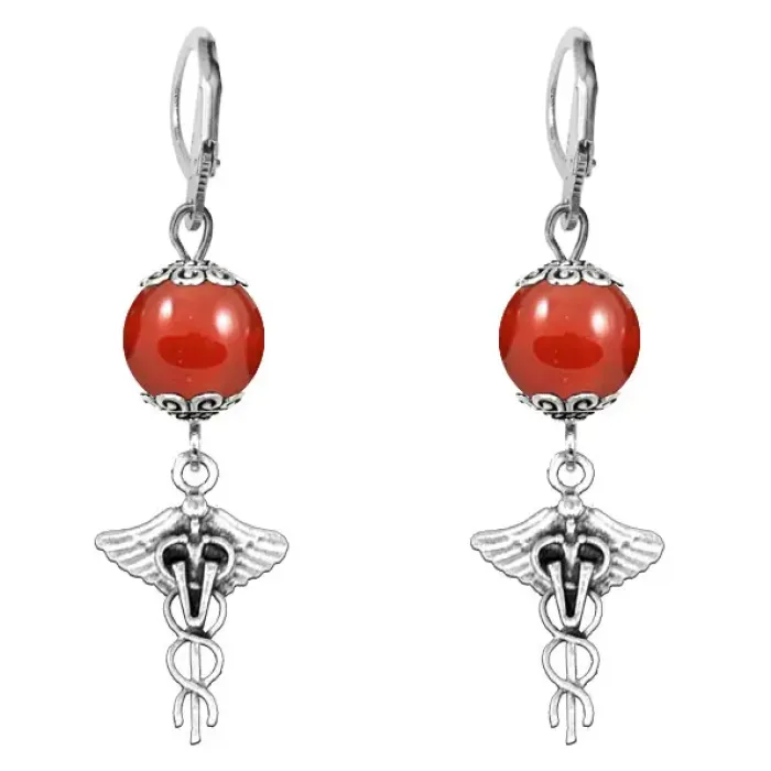 Серьги-амулеты Кадуцей (здоровье, бизнес, гармония), сердолик SE-MKA29-33