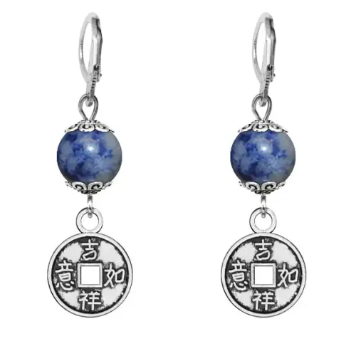 Серьги-амулеты Монетка (богатство), содалит SE-MKA30-13
