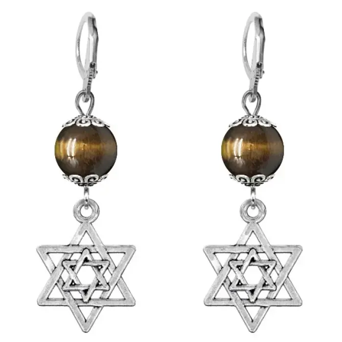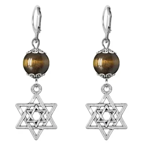 Серьги-амулеты Звезда Давида (от сглаза и зла), тигровый глаз SE-MKA31-02