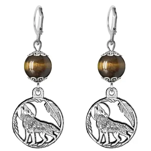 Серьги-амулеты Волк (защита, сила, победа), тигровый глаз SE-MKA31-07