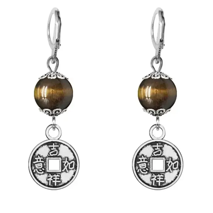 Серьги-амулеты Монетка (богатство), тигровый глаз SE-MKA31-13