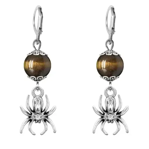 Серьги-амулеты Паук (защита, трудолюбие, достаток), тигровый глаз SE-MKA31-14