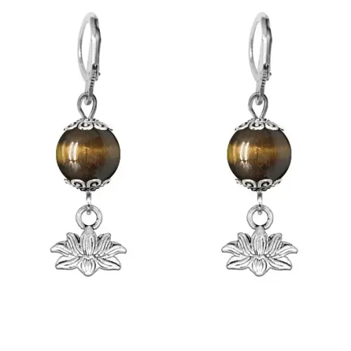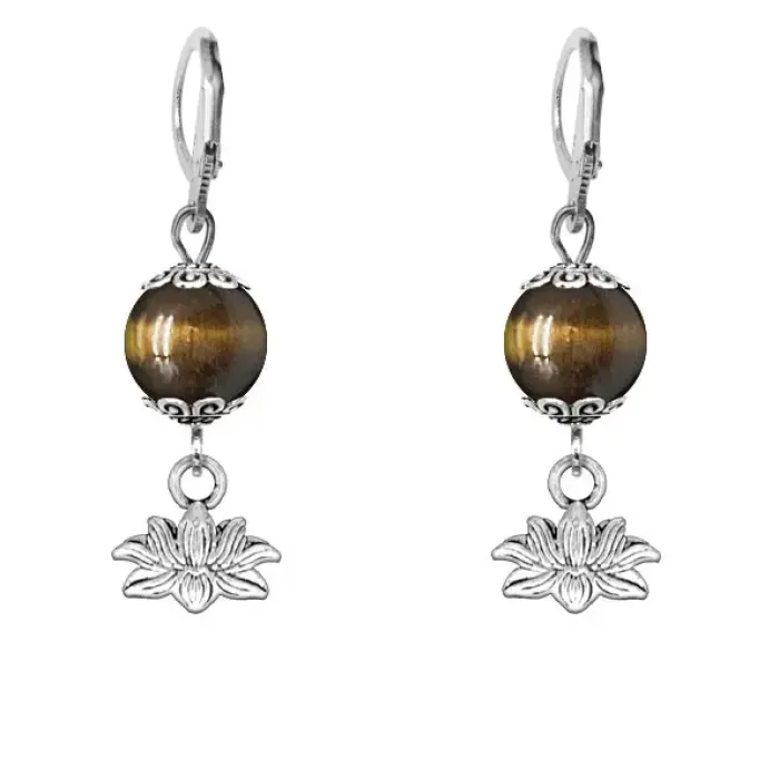 Серьги-амулеты Лотос (гармония и развитие), тигровый глаз SE-MKA31-15