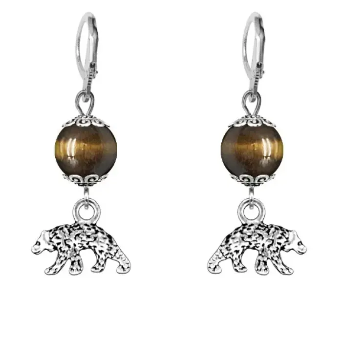 Серьги-амулеты Медведь (защита, сила, победа), тигровый глаз SE-MKA31-19