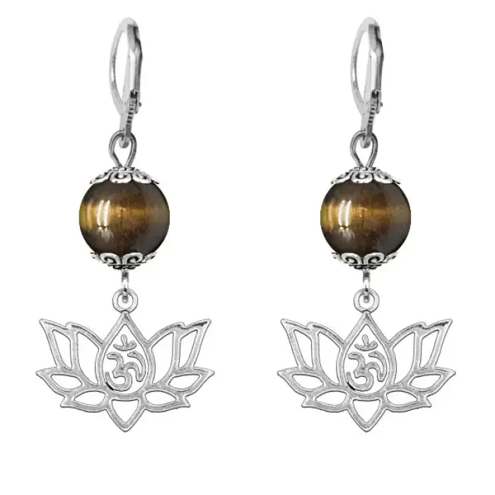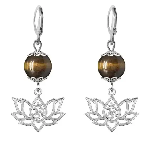 Серьги-амулеты Ом и лотос (защита, гармония, развитие), тигровый глаз SE-MKA31-30