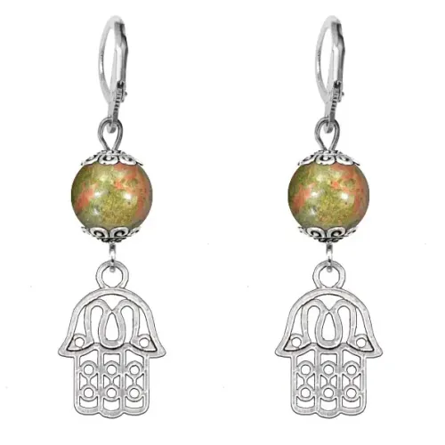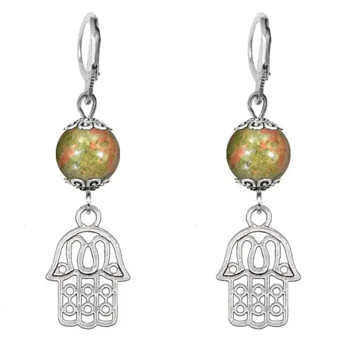 Серьги-амулеты Хамса (от сглаза и зла), унакит SE-MKA32-01