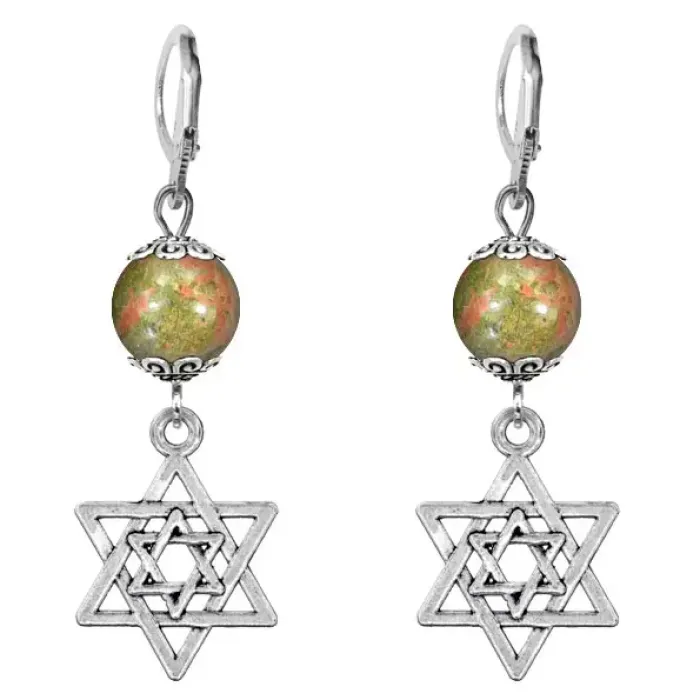 Серьги-амулеты Звезда Давида (от сглаза и зла), унакит SE-MKA32-02