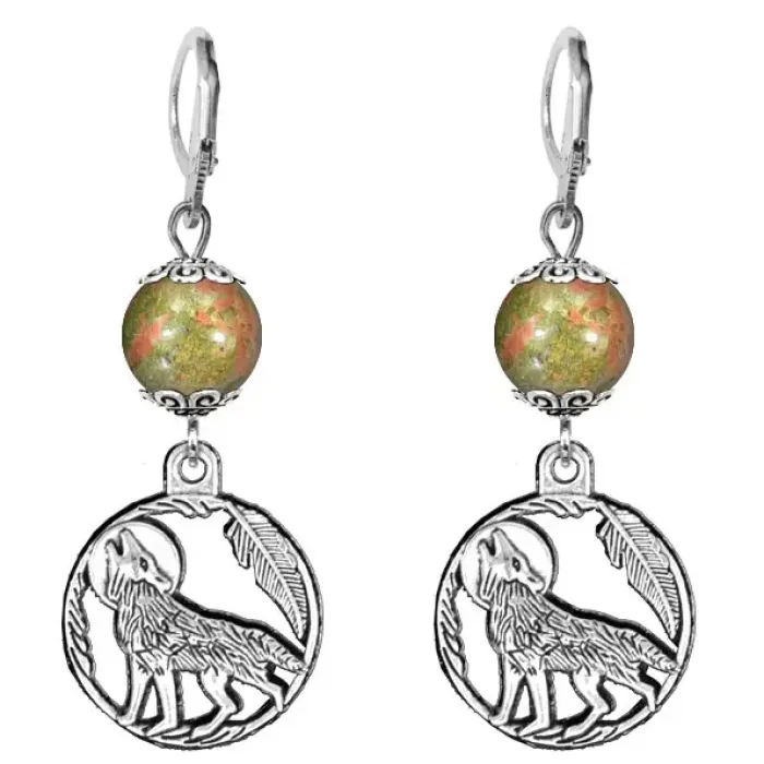 Серьги-амулеты Волк (защита, сила, победа), унакит SE-MKA32-07