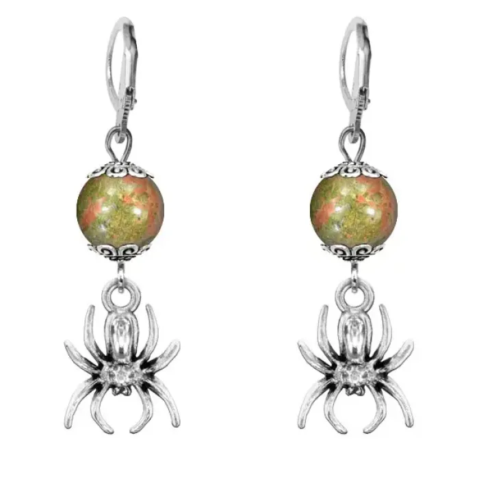 Серьги-амулеты Паук (защита, трудолюбие, достаток), унакит SE-MKA32-14