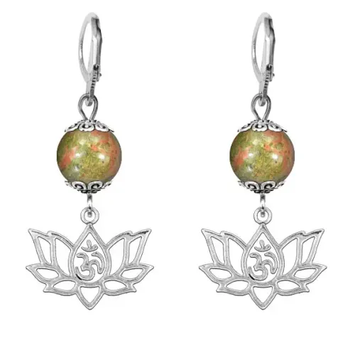 Серьги-амулеты Ом и лотос (защита, гармония, развитие), унакит SE-MKA32-30