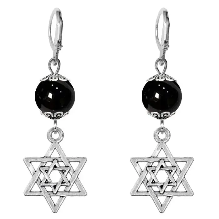 Серьги-амулеты Звезда Давида (от сглаза и зла), черный агат SE-MKA33-02