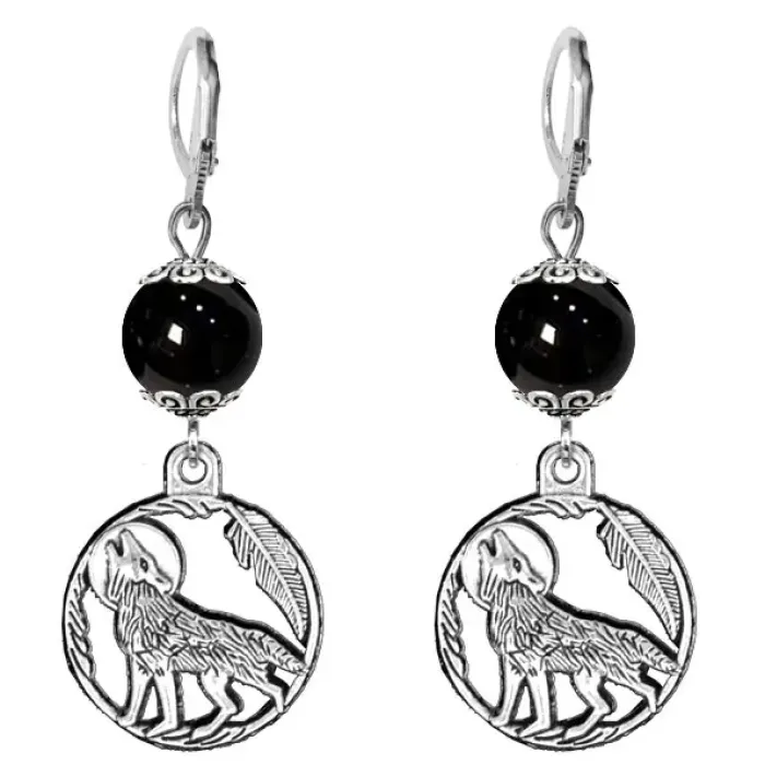 Серьги-амулеты Волк (защита, сила, победа), черный агат SE-MKA33-07