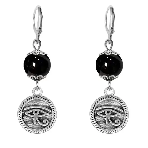 Серьги-амулеты Око Ра (дар предвидения), черный агат SE-MKA33-09