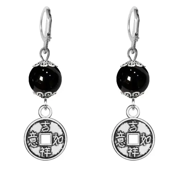 Серьги-амулеты Монетка (богатство), черный агат SE-MKA33-13