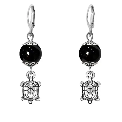Серьги-амулеты Черепаха (здоровье и долголетие), черный агат SE-MKA33-16