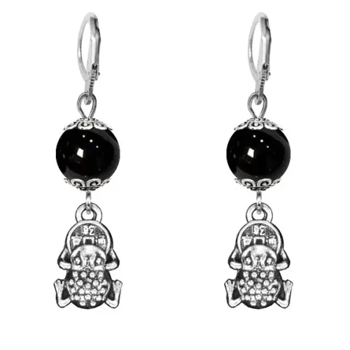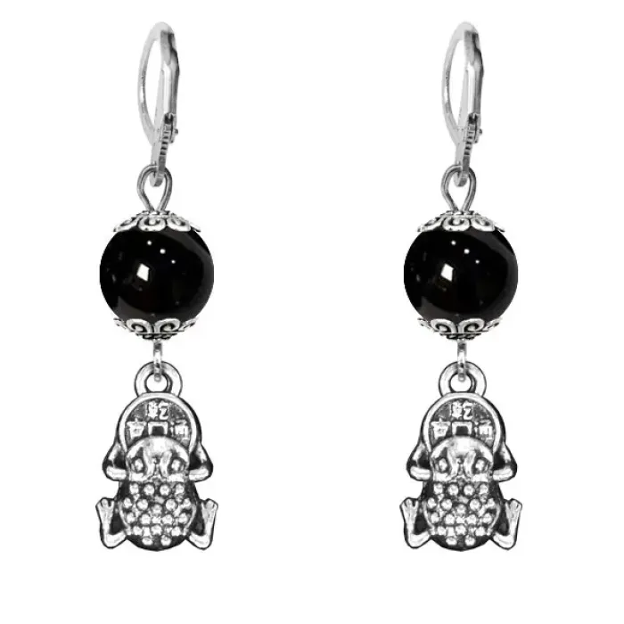 Серьги-амулеты Лягушка с монетой (богатство), черный агат SE-MKA33-23