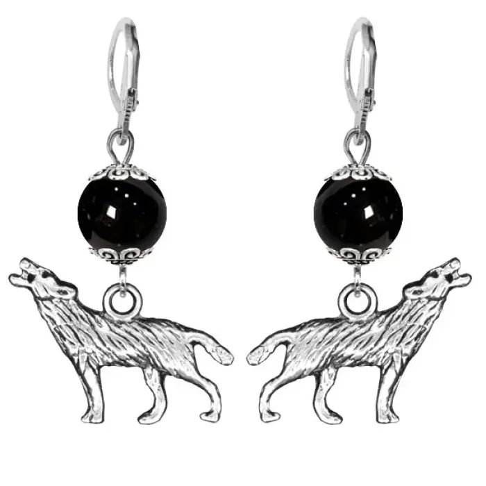 Серьги-амулеты Волк (защита, сила, победа), черный агат SE-MKA33-28