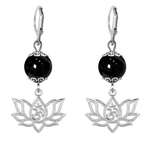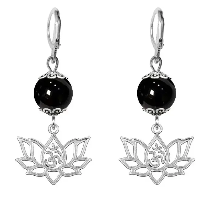 Серьги-амулеты Ом и лотос (защита, гармония, развитие), черный агат SE-MKA33-30