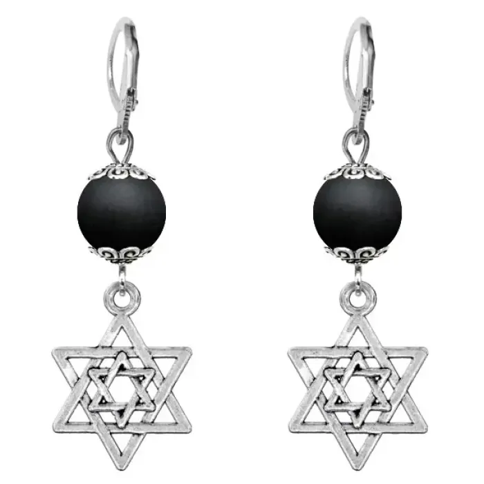 Серьги-амулеты Звезда Давида (от сглаза и зла), шунгит SE-MKA34-02