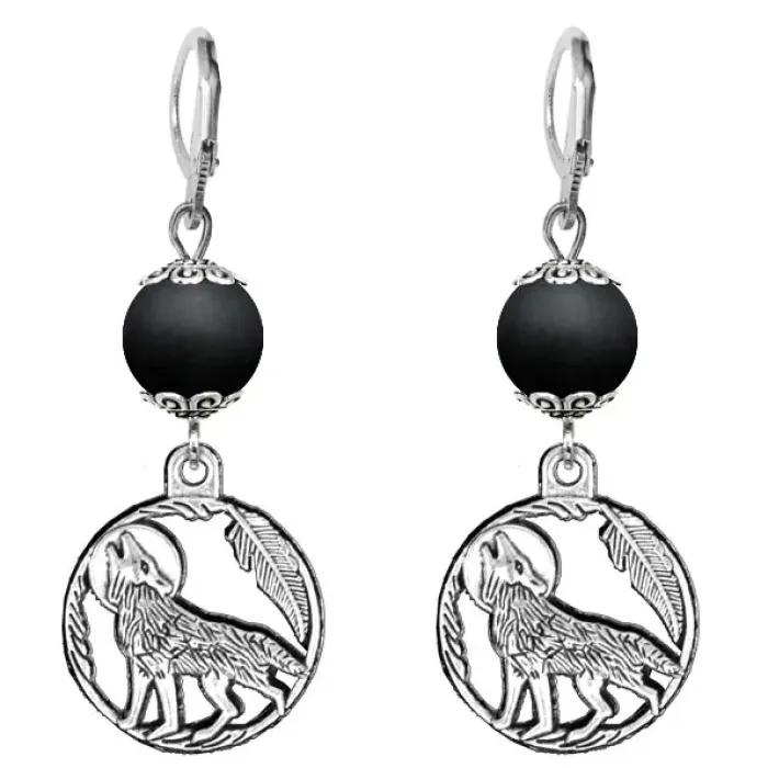 Серьги-амулеты Волк (защита, сила, победа), шунгит SE-MKA34-07