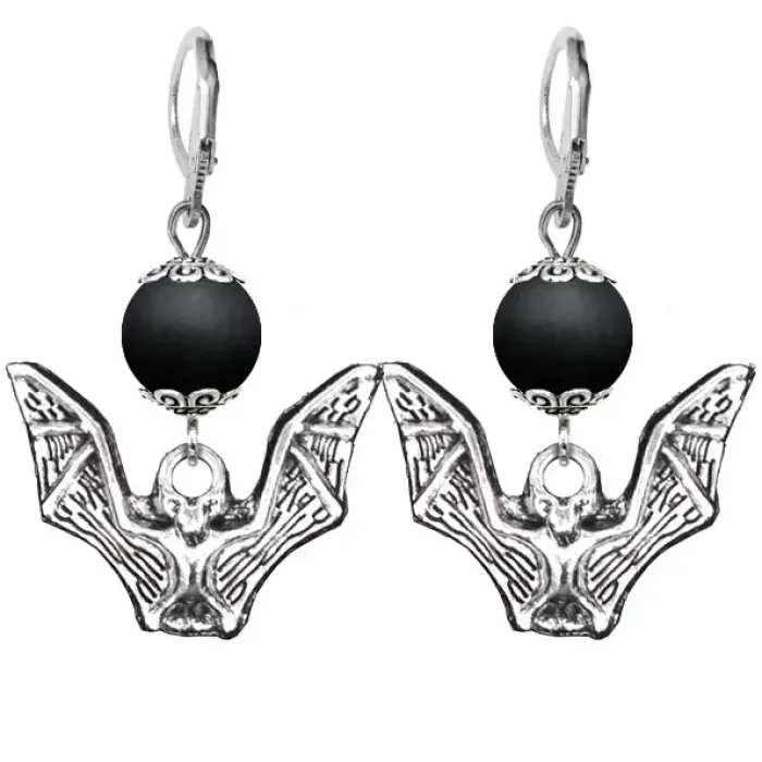 Серьги-амулеты из шунгита с дизайном в виде летучей мыши.