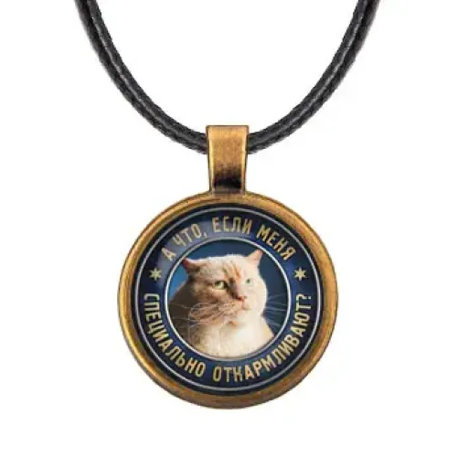 Кулон из бижутерного сплава с покрытием под бронзу и выпуклой стеклянной линзой.