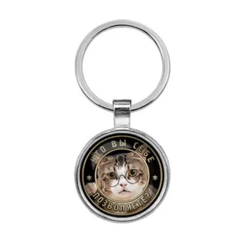 Брелок из бижутерного сплава со стеклянной линзой и фразой «Что вы себе позволяете?».