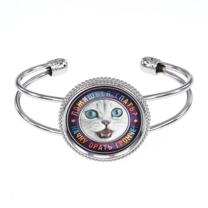 Браслет «Ложишься спать?» — аксессуар из бижутерного сплава с открытой формой и стеклянным элементом.