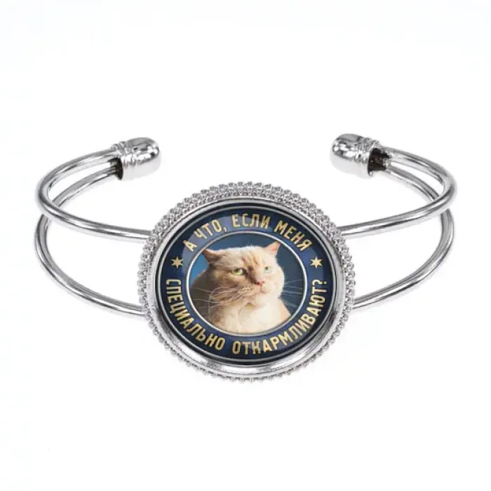 Браслет из бижутерного сплава с открытым дизайном. Изображение защищено выпуклой стеклянной линзой.