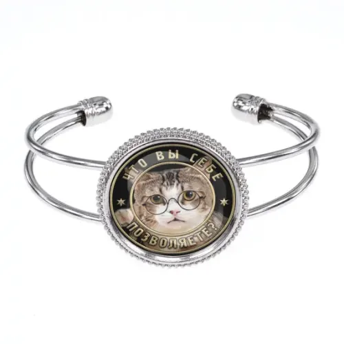 Бижутерный браслет с кулоном. Основной элемент — круглый медальон диаметром 25 мм под выпуклой стеклянной линзой, открытая форма браслета.