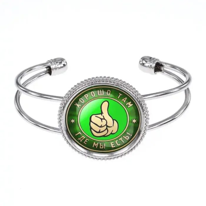 Браслет "Хорошо там, где мы есть" — это стильный аксессуар, который символизирует гармонию и уют в каждом моменте жизни. Изготовленный из бижутерного сплава с покрытием под серебро и стеклом, он станет прекрасным дополнением к любому образу.