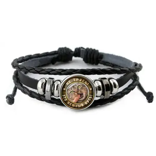 Кожаный браслет с декоративным элементом под стеклянной линзой.