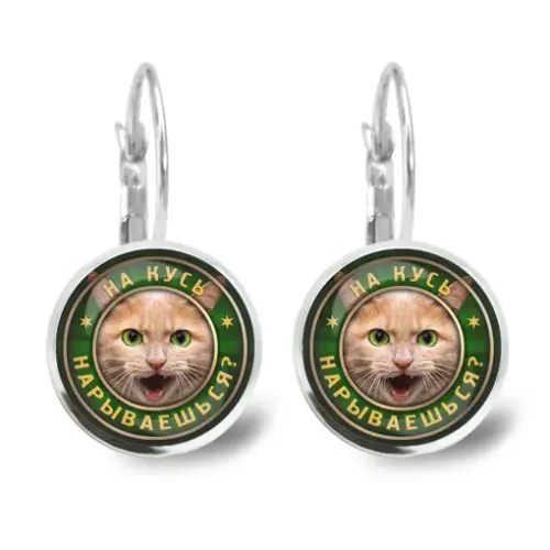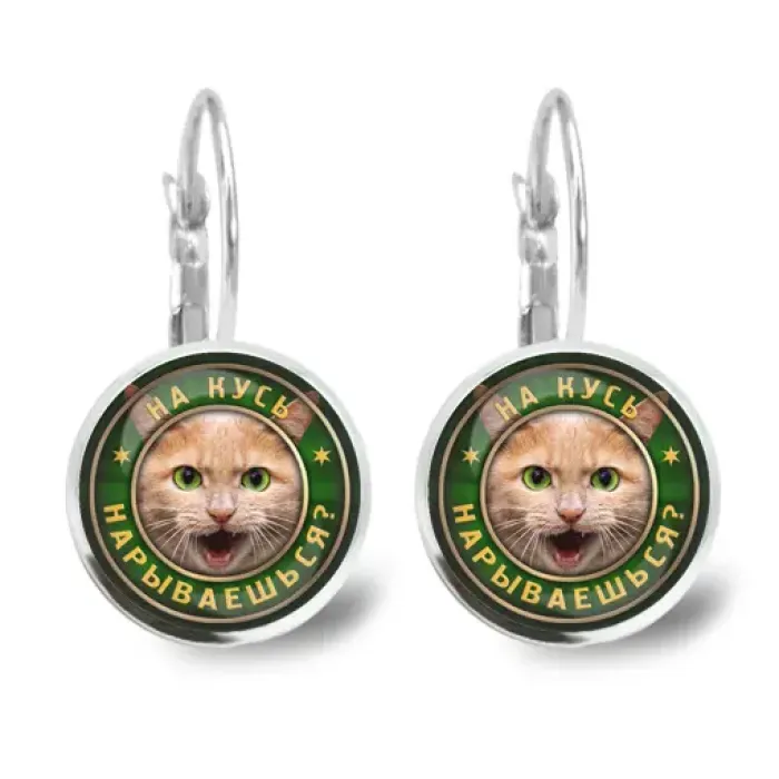 Серьги-сувенир из бижутерного сплава с изображениями под выпуклыми стеклянными линзами.