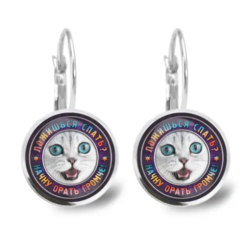 Серьги с изображениями под выпуклыми стеклянными линзами, замок типа левербэк.