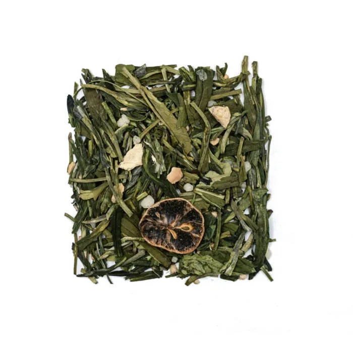 Освежающий и гармоничный ароматизированный чай на основе китайского зелёного. Его характер определяют яркие, согревающие ноты имбиря и цитрусовой свежести лимона, дополненные медовой сладостью.