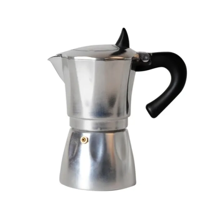 Корпус кофеварки изготовлен из алюминия. Нагревание воды в нижнем резервуаре создаёт давление, которое проталкивает воду через фильтр с молотым кофе. Готовый напиток собирается в верхнем отсеке через специальную трубку. Такая конструкция обеспечивает простой и функциональный процесс приготовления.