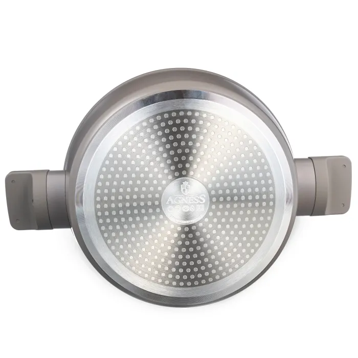 Сотейник со стеклянной крышкой и антипригарным покрытием Pfluon Marble от Agness — это функциональная посуда, предназначенная для удобного и безопасного приготовления пищи. Основные особенности включают усиленное антипригарное покрытие Constant, которое позволяет готовить с минимальным количеством масла и выдерживает до 20 000 циклов истирания.