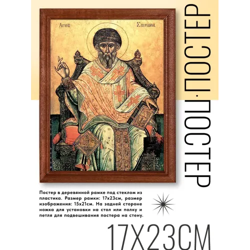 Постер в рамке с изображением Святого Спиридона Тримифунтского — это не только элемент декора, но и символ духовности и веры. Идеально подходит для украшения салонов, магазинов, офисов, кафе и жилых помещений.