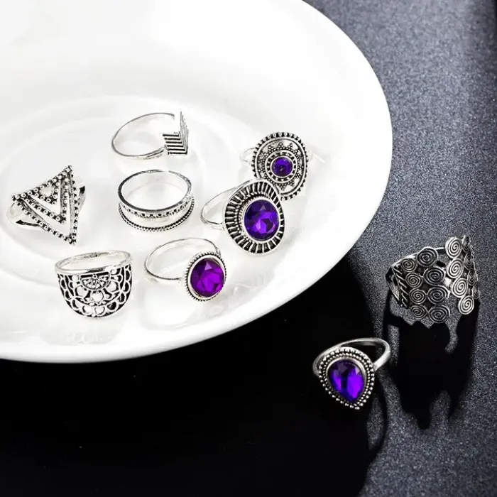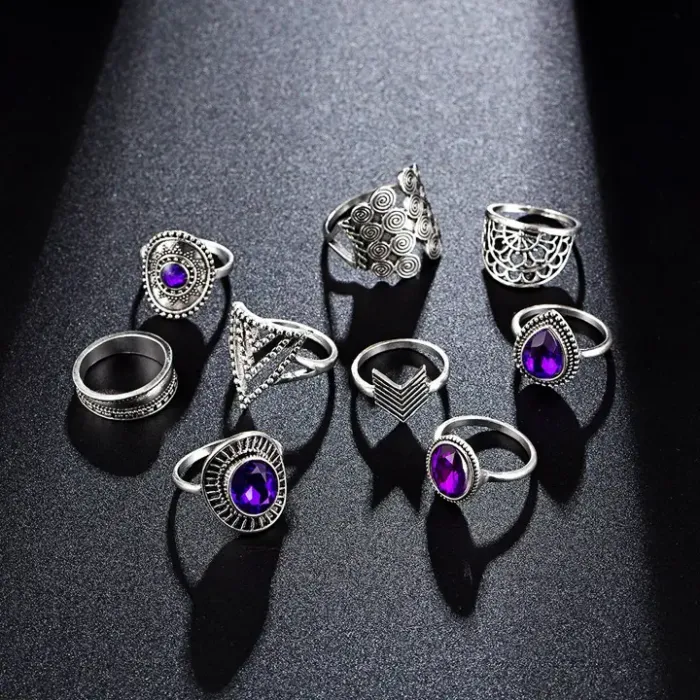 Набор из 9 колец, металл, цвет серебряный KLN036