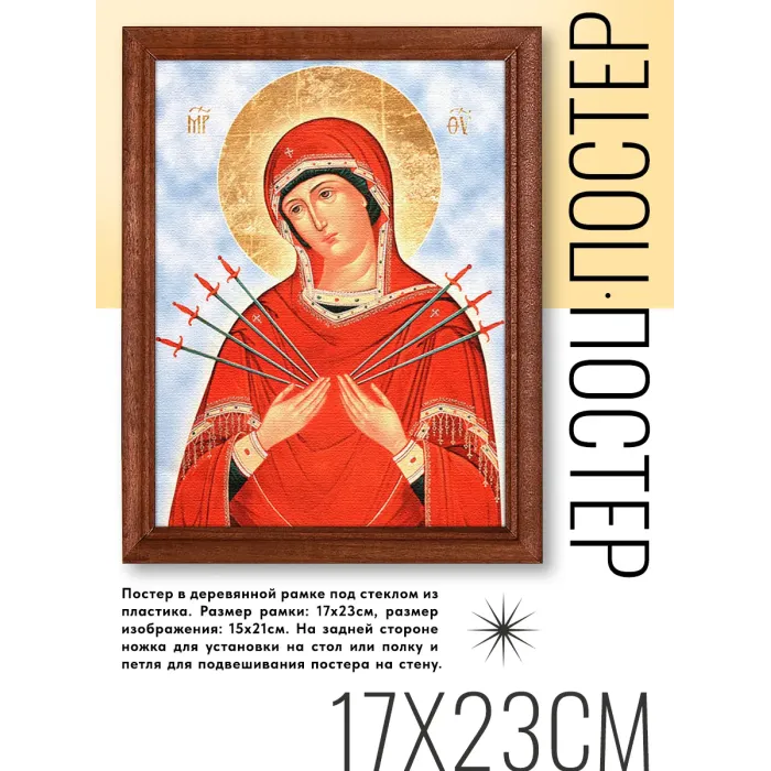 Постер в рамке 17х22см Божья Матерь Семистрельная POSV-0137