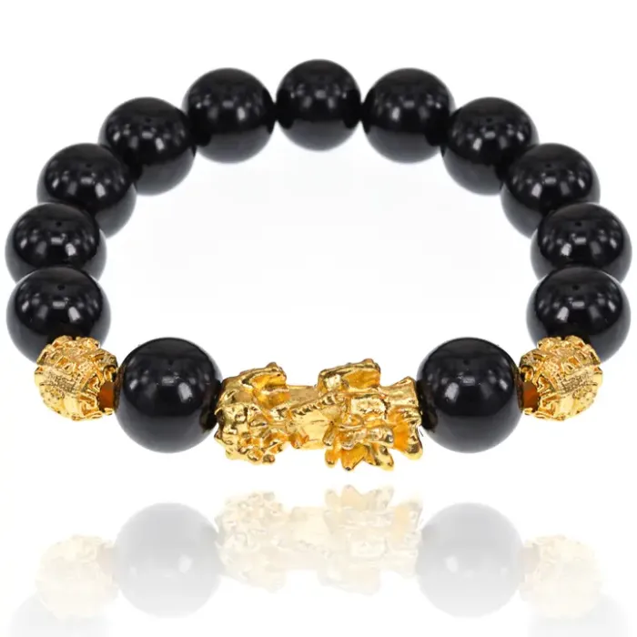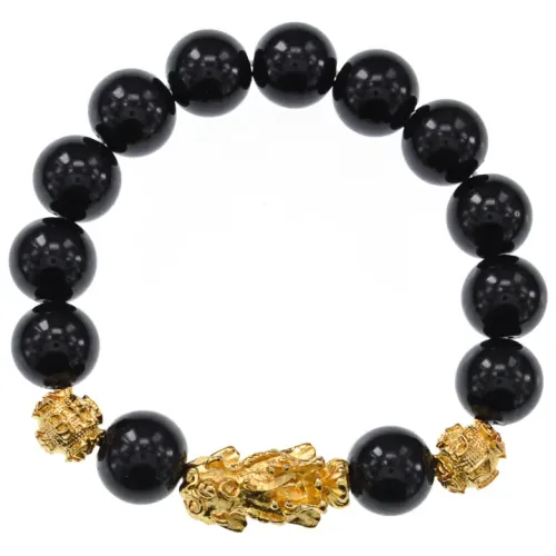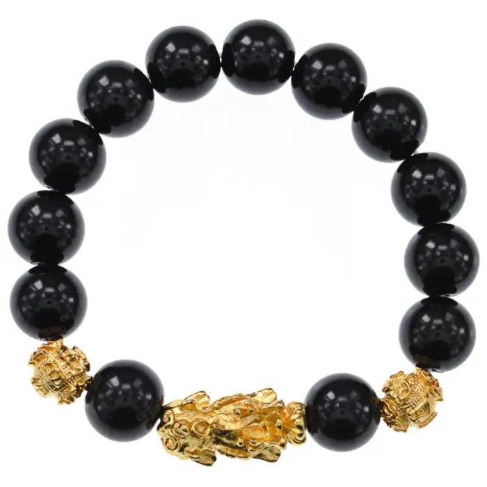 Браслет Пи Щу 12мм, черно-золотой BS404-1