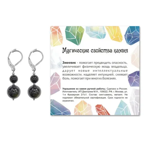 - Упаковка включает прозрачный пакет с подвесом и вкладыш с описанием значения камня, что делает эти серьги отличным подарком для близких.