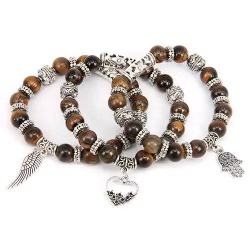 Браслет из натурального камня Тигровый глаз, подвески в ассорт. BJBS-089