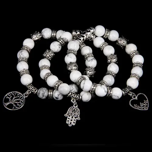 Браслет из натурального камня кахолонг с подвесками.
