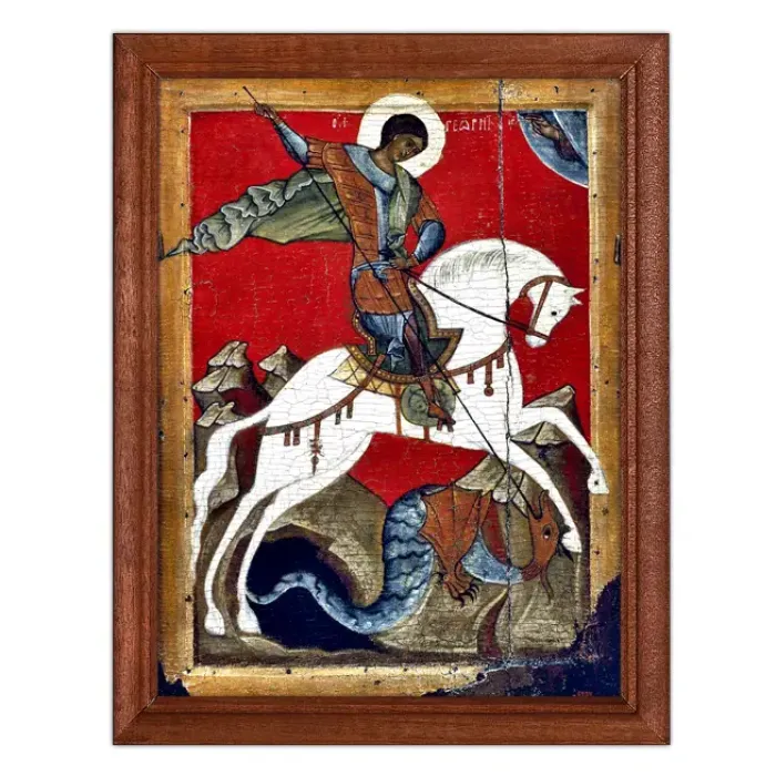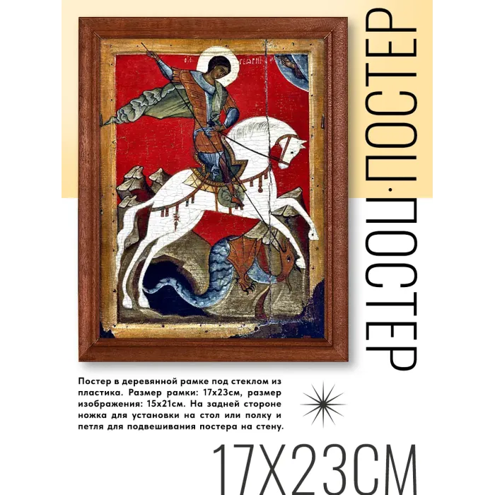 Постер в рамке «Чудо Георгия о змие» — это не только элемент декора, но и символ веры и надежды. Репродукция иконы выполнена с использованием качественных материалов, что обеспечивает долговечность и сохранность изображения. Основные особенности: