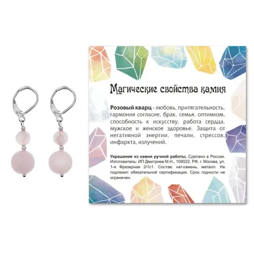 Серьги ручной работы из натурального камня Розовый кварц — это не просто украшение, а символ любви и гармонии. Эти элегантные серьги длиной 38 мм (включая швензу) привлекут внимание благодаря своим бусинам диаметром 6 мм и 10 мм. Фурнитура выполнена из бижутерного сплава с покрытием под серебро, что придаёт изделию стильный вид и долговечность. Каждая пара упакована в прозрачный пакет с подвесом и дополнена вкладышем, рассказывающим о значении розового кварца в культуре. Эти серьги идеально подойдут для любого случая, добавляя нотку утончённости в образ.