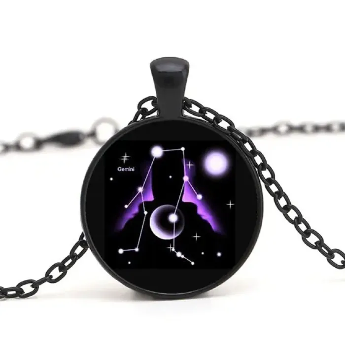 Черный кулон с цепочкой Знаки Зодиака - Близнецы