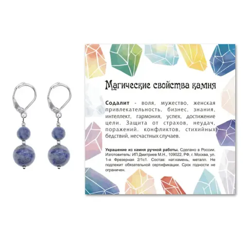 - Упаковка в прозрачный пакет с подвесом включает вкладыш с описанием значения камня, что делает эти серьги отличным подарком.