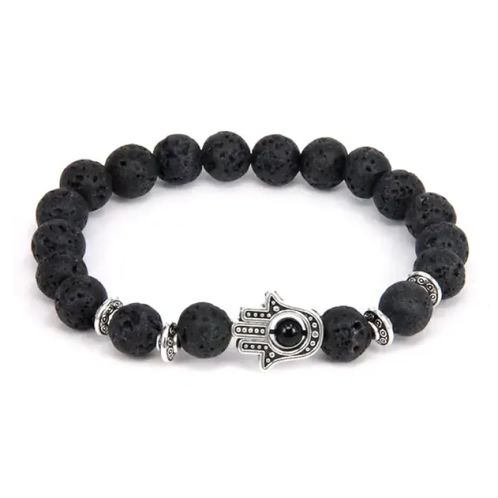 Браслет Хамса, лава 8мм, цвет серебр. BJBS-146-S