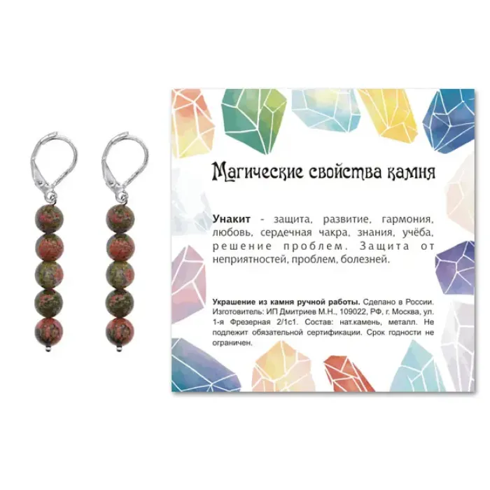 3. Упаковка включает прозрачный пакет с подвесом и вкладыш с описанием значения камня, что делает серьги отличным подарком.